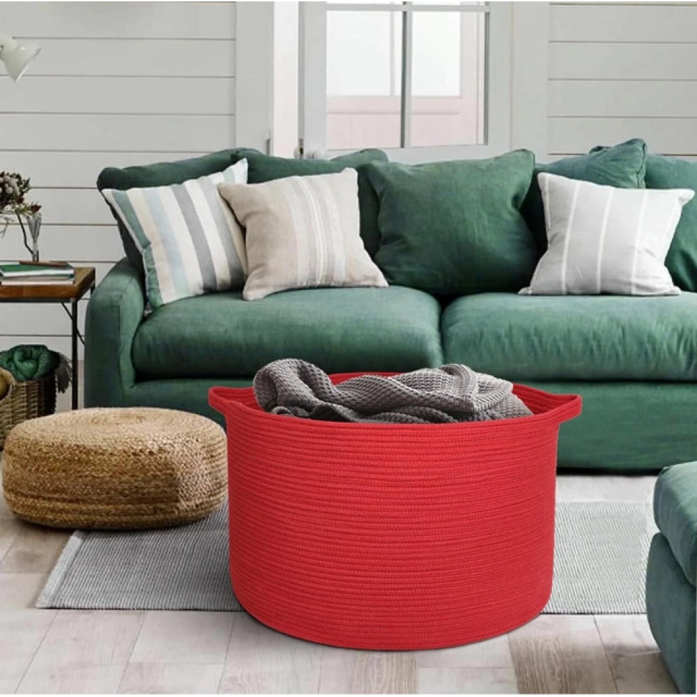 Cotton 14x12 Inch Pack of 1 Storage Basket For Clothes (Red)