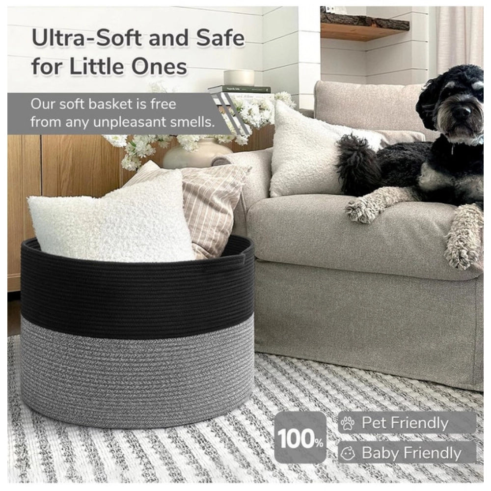 Cotton 16x14 Inch Pack of 1 Storage Basket For Clothes (Black)