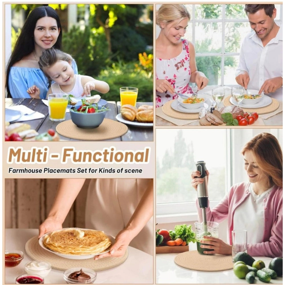 Cotton Dining Table Round Placemat Mats Set of 4 (Beige)