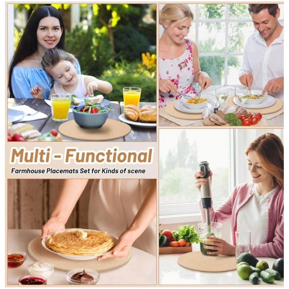 Cotton Dining Table Round Placemat Mats Set of 4 (Cream)