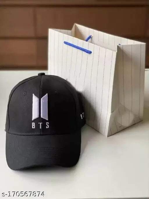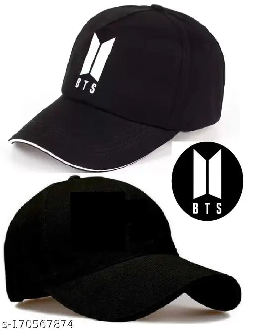 NEW STYLISH & TRENDY BLACK BTS BASE BALL COTTON CAP WITH PLAIN BLACK CAP (PACK OF TWO) FOR SPORTY FORMAL AND CAUSAL FOR MEN AND BOYS