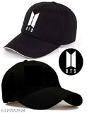 Name : NEW STYLISH & TRENDY BLACK BTS BASE BALL COTTON CAP WITH PLAIN BLACK CAP (PACK OF TWO) FOR SPORTY FORMAL AND CAUSAL FOR MEN AND BOYS