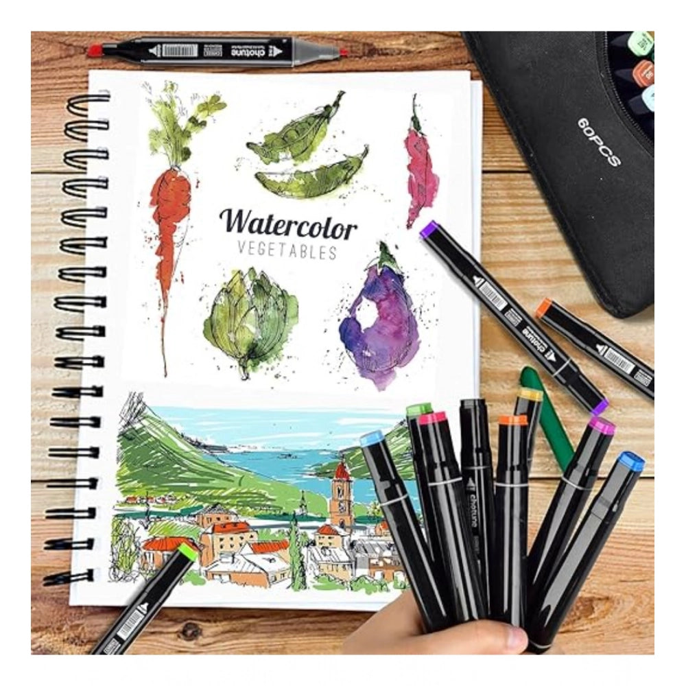 Plastic 60Pcs Colors Art Markers Sketch Pen Dual Tip Artist Art Marker (Multicolor )