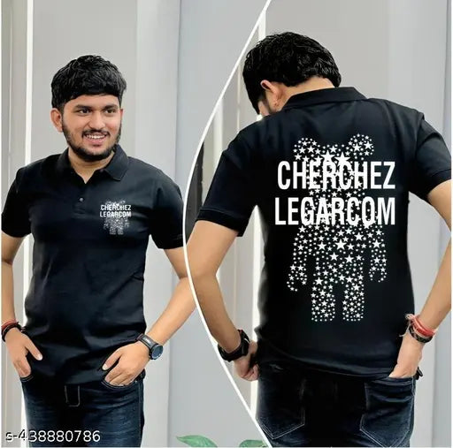 Relaxed fit cotton polo t-shirts for men, short sleeves, printed design, size M (38in x 26in), L (40in x 27in), XL (42in x 28in). Made in India