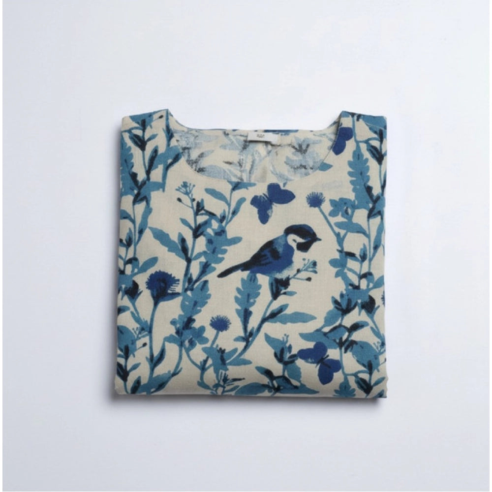 Women's Cotton Printed Kurti (Blue)