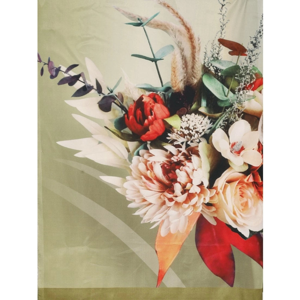 Women's Crepe Digital Print Saree With Unstitched Blouse 5.5Mtr (Multicolor)