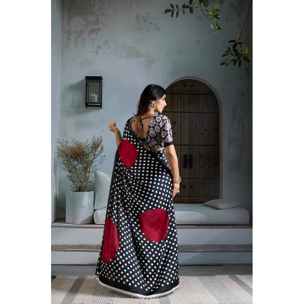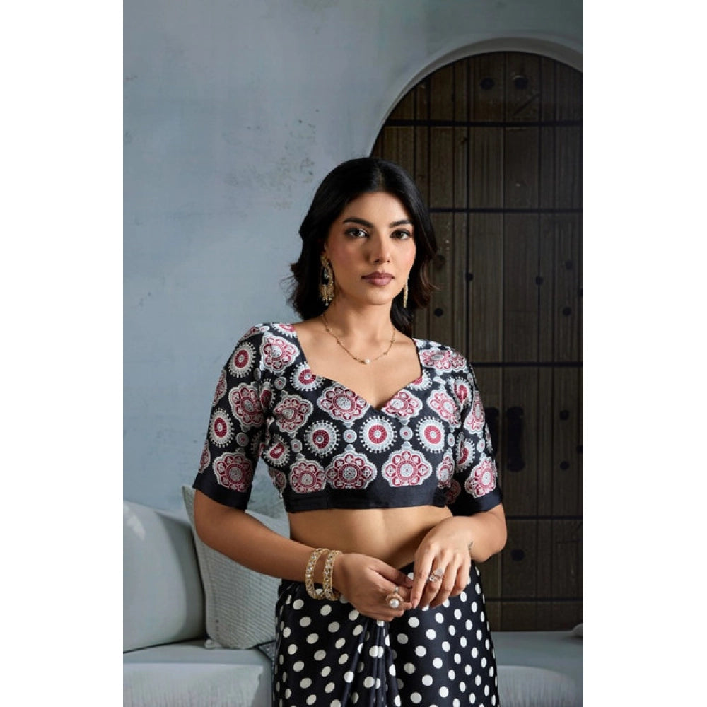 Women's Satin Crepe Printed Saree With Unstitched Blouse 5.5Mtr (Black)