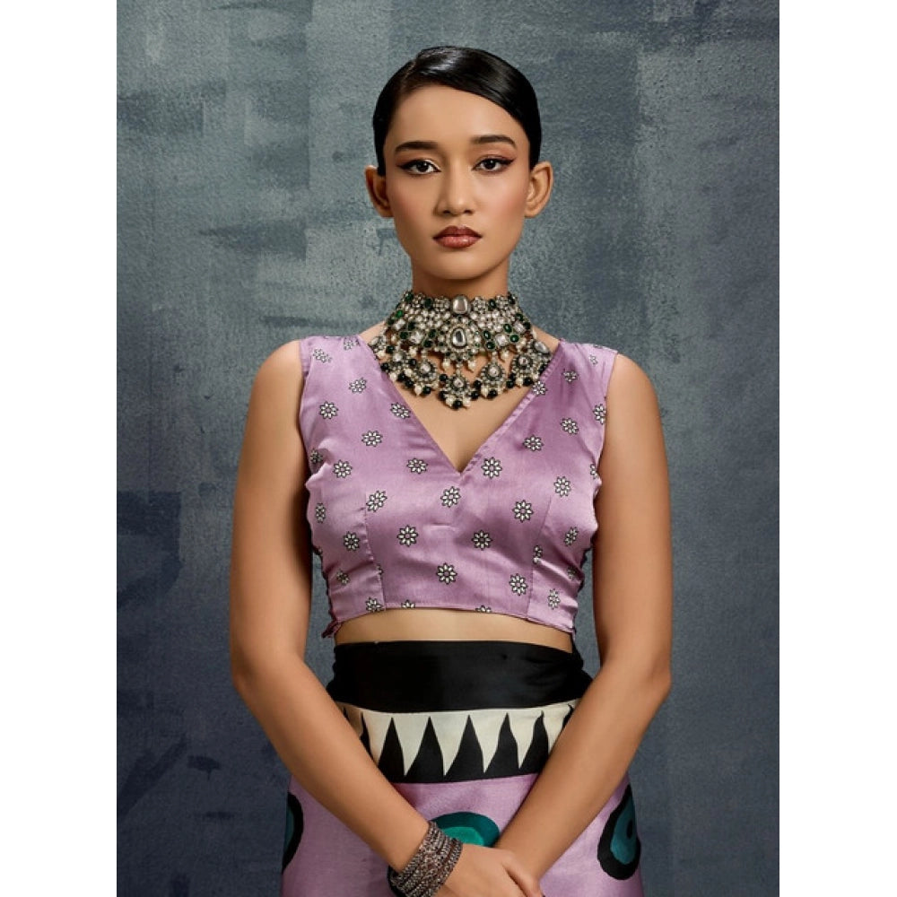 Women's Satin Crepe Printed Saree With Unstitched Blouse 5.5Mtr
