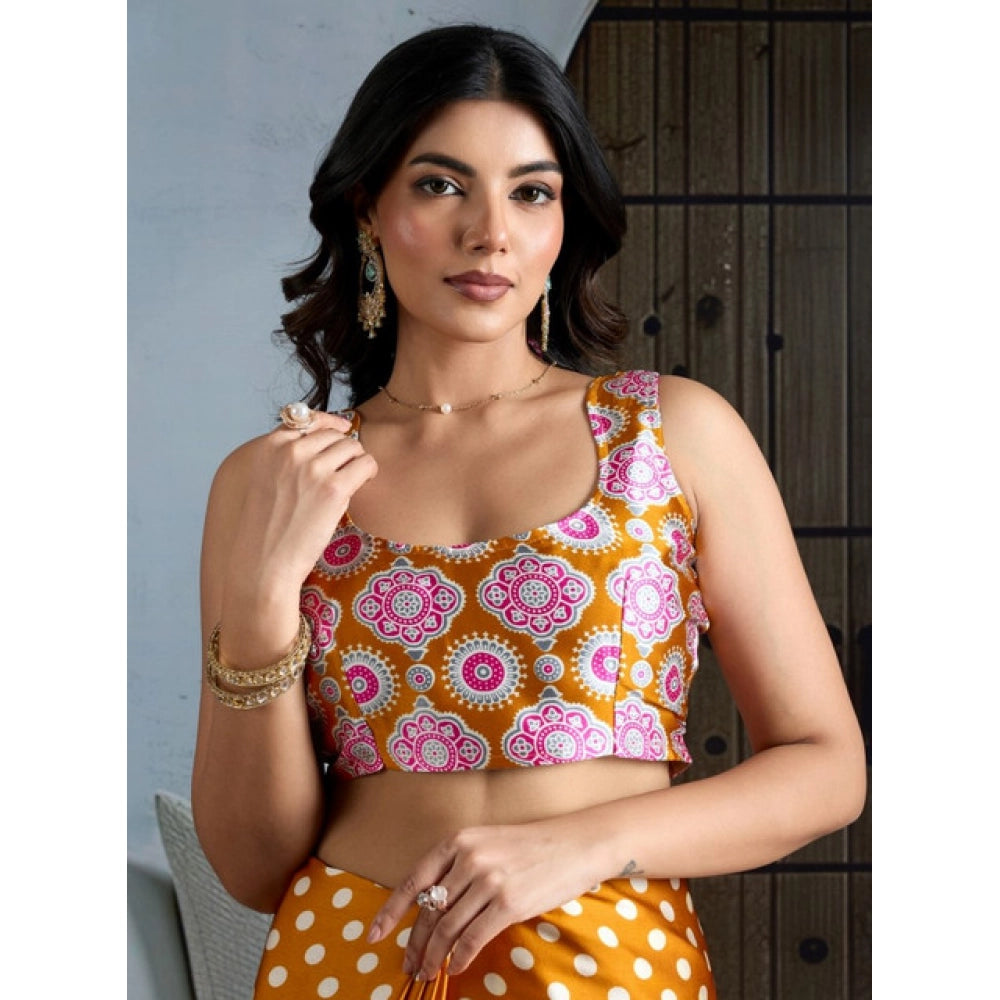 Women's Satin Crepe Printed Saree With Unstitched Blouse 5.5Mtr (Mustard)