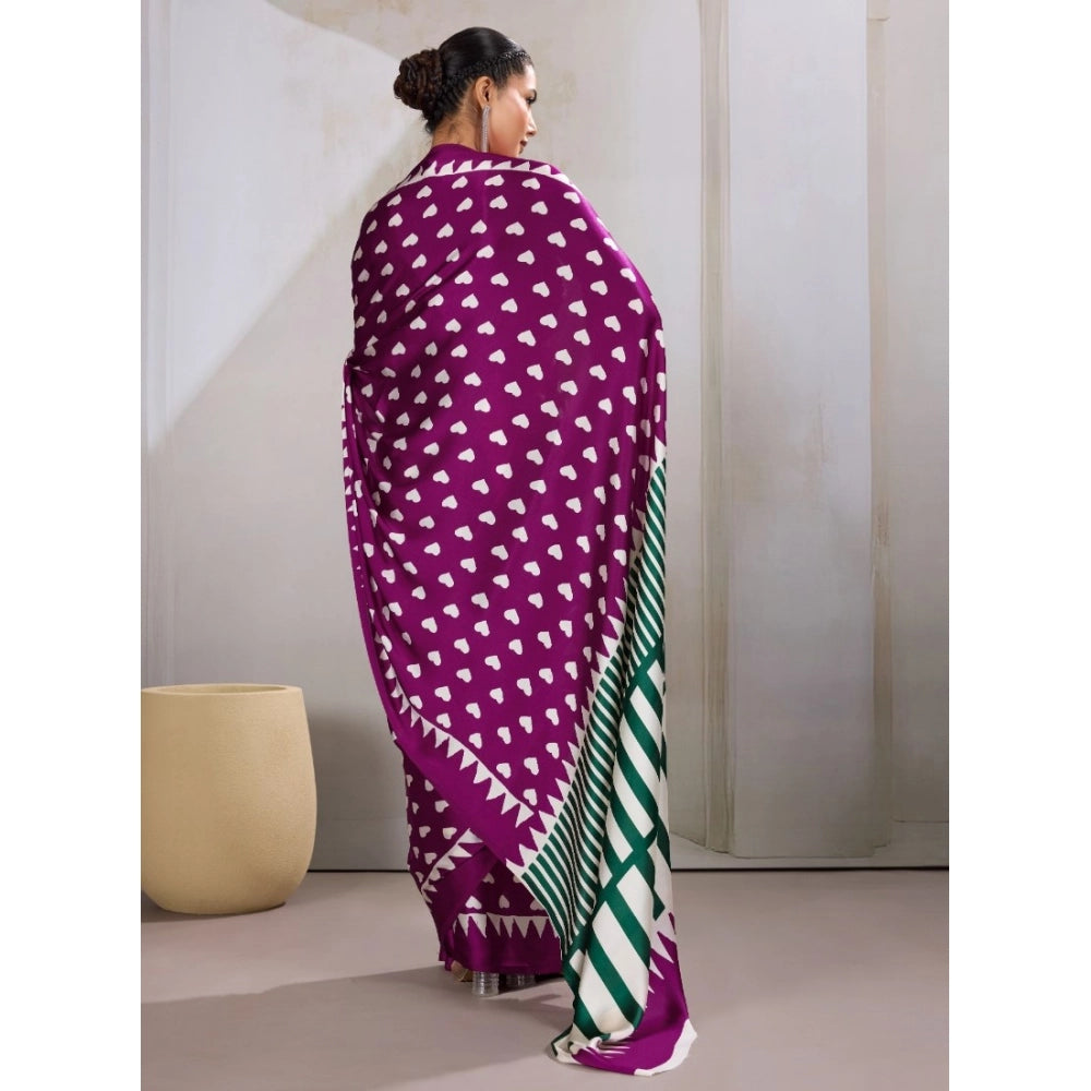 Women's Satin Crepe Printed Saree With Unstitched Blouse 5.5Mtr (Purple)