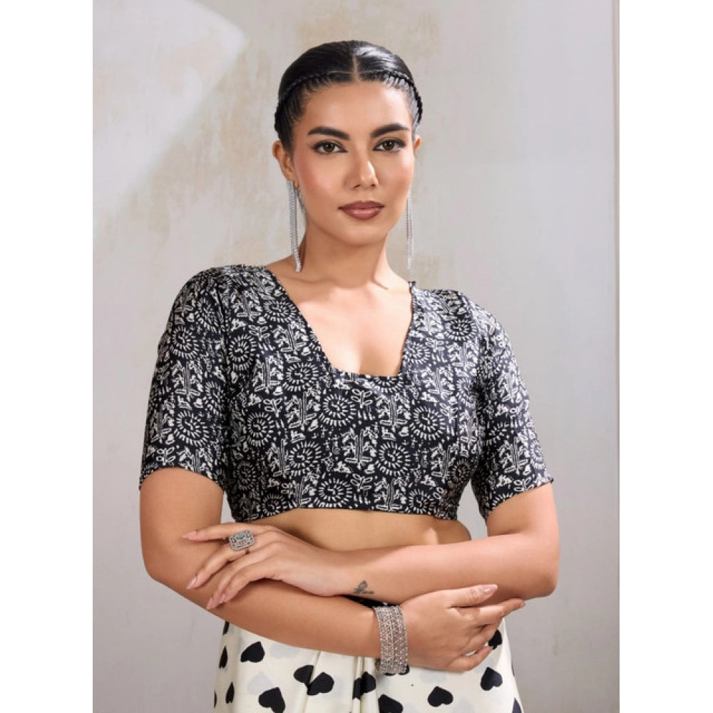Women's Satin Crepe Printed Saree With Unstitched Blouse 5.5Mtr