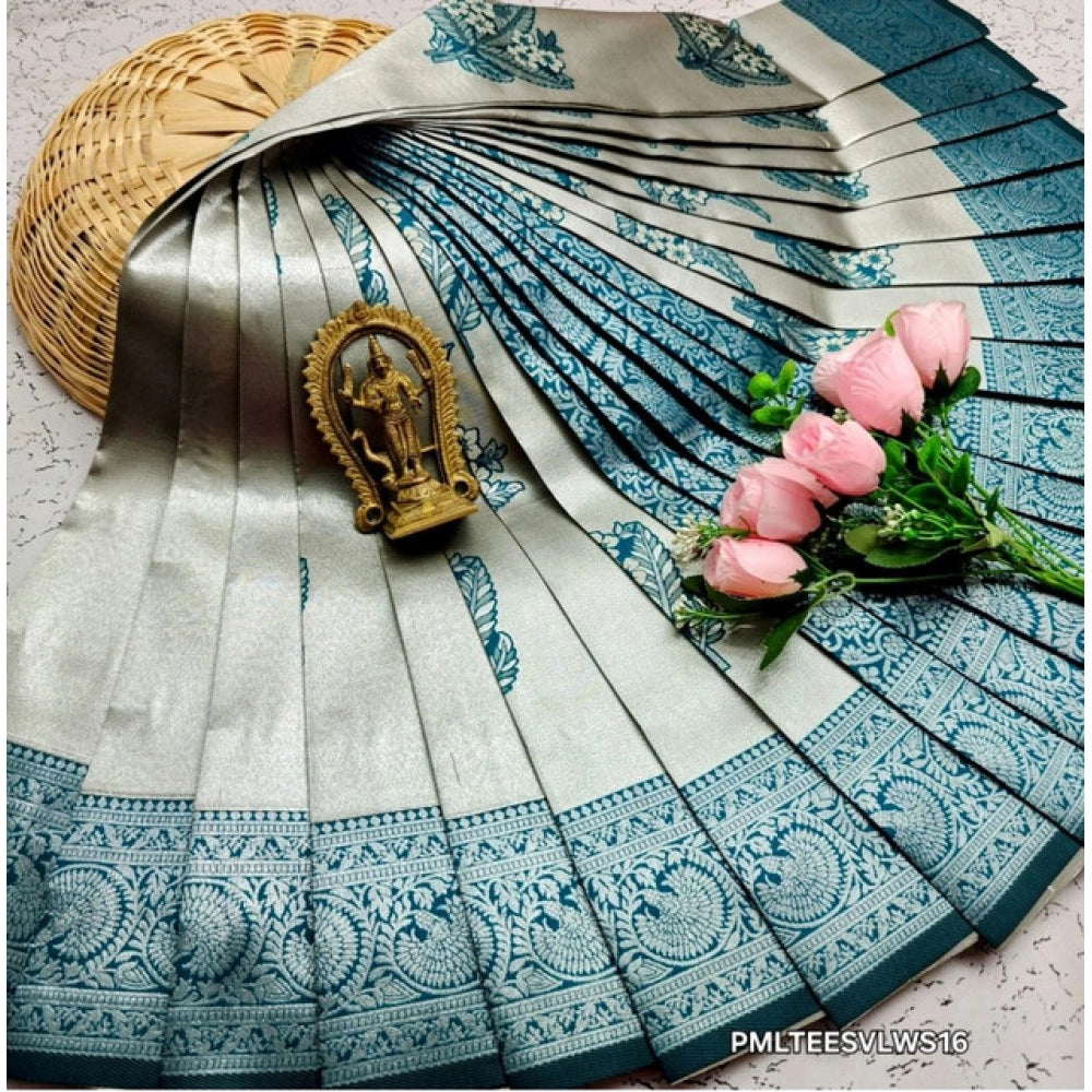Women's Soft Silk Printed Saree With Unstitched Blouse 5.5Mtr (Silver Grey)
